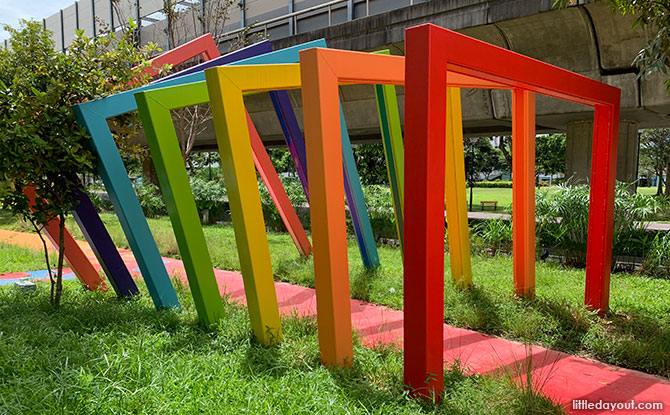 The seven frames almost seem to create a rainbow thoroughfare that kids can cycle through.