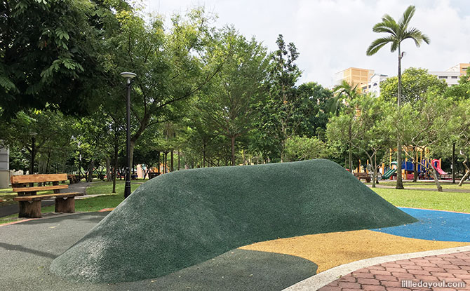 However, the most random-looking play feature in the park is a padded hump for kids to scramble up and over.