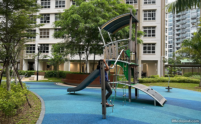 The playground at Tampines GreenFlora is pretty easy to find and it is located in close proximity to the adult-sized fitness corner, meaning children and adults can enjoy playtime together.