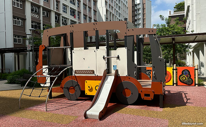 Another highlight of the Tampines GreenSpring playground is a truck play structure. With a ramp leading into the truck from the rear, kids can play pretend within the truck, which is reminiscent of the trucks that would transport sand out of a quarry.