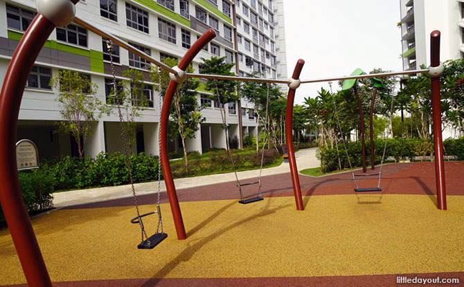 This Tampines playground ha a section with three swings. Interestingly these swings have back support, which is designed to cater to allow more children of various ages to enjoy the swing. We also noticed two hopscotch outlines near both playground areas.