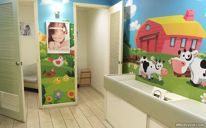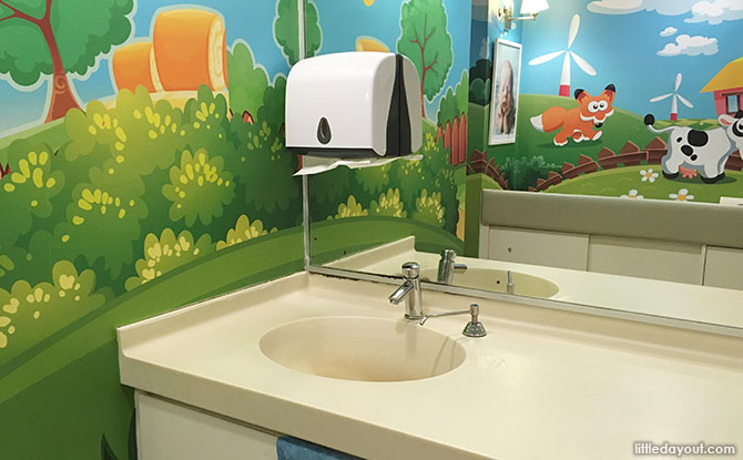 Tanglin Mall’s Baby Care Room is spacious, clean and cheerily decorated with colourful cartoon cow characters. It is well equipped with a sink, hot water dispenser and two cushioned diaper changing stations, making it a pleasant place for mummies and daddies to attend to their young children.