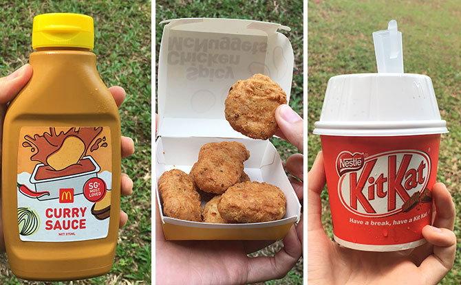 Spicy Chicken McNuggets, Curry Sauce Bottle, French Onion Shaker Fries, KIT KAT McFlurry and Purple Sweet Potato Waffle Cone have appeared at McDonald’s Singapore stores, for a limited time only. We headed down to check them out.