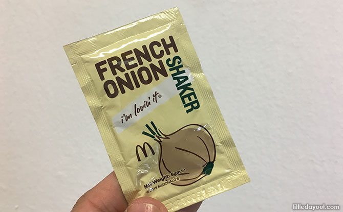 French Onion Shaker Fries are available with any upsized Extra Value Meal. We tried the French Onion Shaker Fries and once the fries were coated with the seasoning powder, it reminded us of a bag of potato crisps.