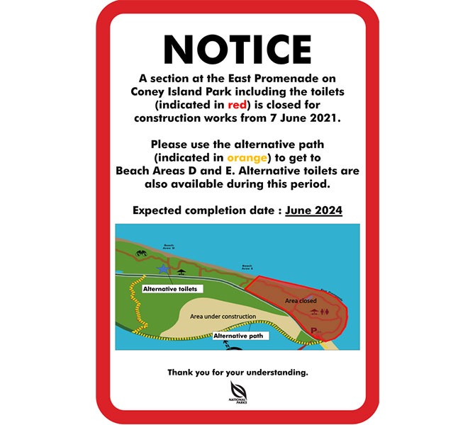 However, do note that due to the construction of the OBS facility, sections of the island on the eastern end, including the East Promenade, are closed off. There are alternative paths available.