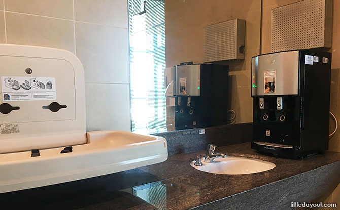 The nursing room at Terminal 3’s transit area is clean and minimally furnished with a foldable diaper changing station, baby diaper dispenser, sink and a hot and cold water dispenser. For mums that wish to seek some privacy to nurse or express, there is also a private breastfeeding room that is equipped with a cushioned chair and an electrical point, with a sliding door that can be closed.