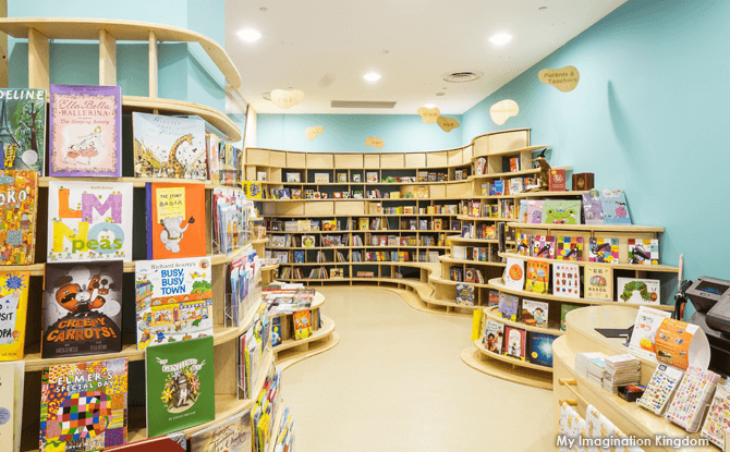 Stocking over 2,000 books, owner Jaclyn Tan wanted My Imagination Kingdom to be a bookstore where children picked their own books rather than one where parents picked the books for their kids. This led to the creation of a store with little alcoves for children to immerse themselves amongst books. The type of books that can be found at My Imagination Kingdom include board books, pop-up books, picture books and chapter books.