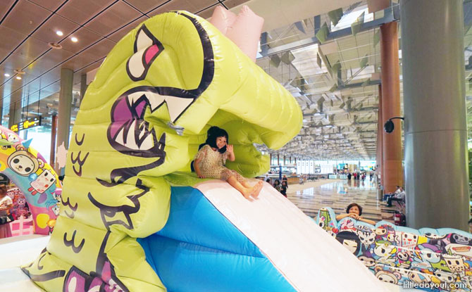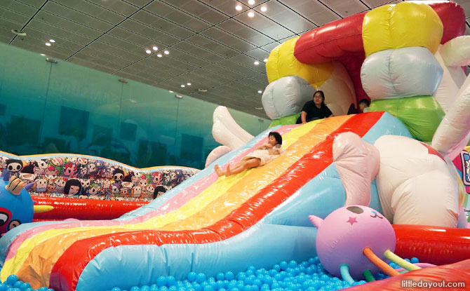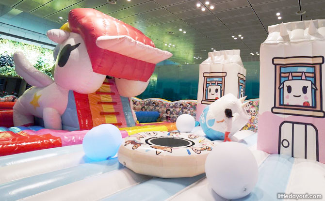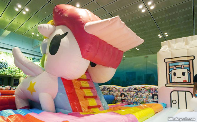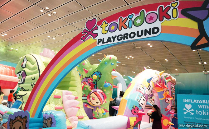 The tokidoki inflatable playground at Changi Airport is open from 12 pm to 11 pm during the March 2019 school holidays, on the Saturdays and Sundays between 30 March and 28 April, and on 19 April and 1 May, which are Public Holidays.