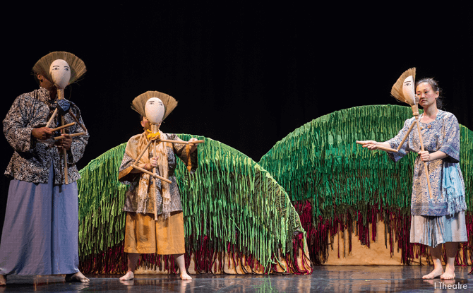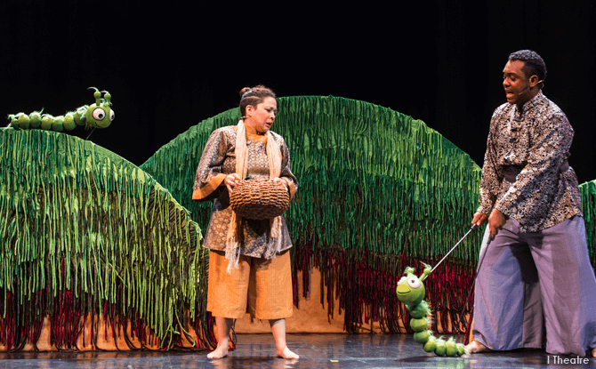 Mat Jenin and The Coconuts – a Malaysian tale – served up a strong start to the show. The lead character of Mat Jenin himself is a gangly puppet fashioned out of coconut-husk kitchenware.