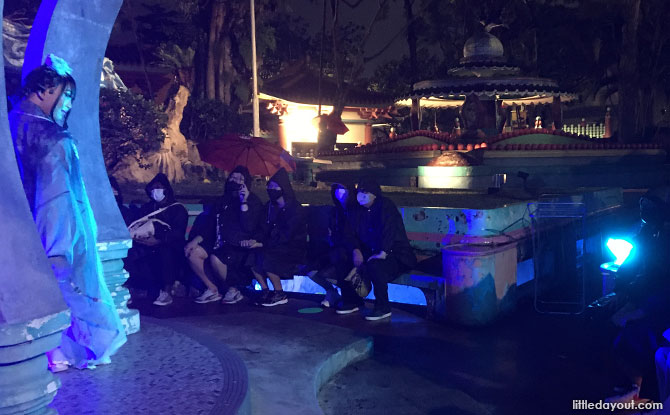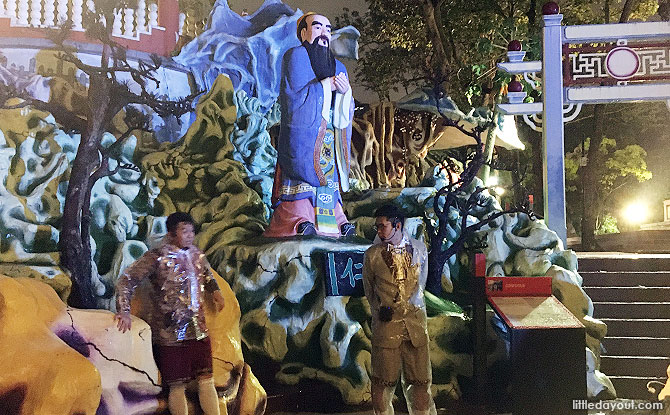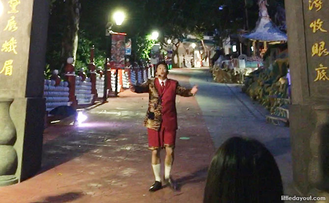 The tour resumed after the rain subsided, led by the Tiger Balm King who remained a standout act without missing a beat. Garbed in black hooded raincoats provided by the organisers, we felt like a secret society of masked druids in the dark as he guided us ably around the sprawling space!