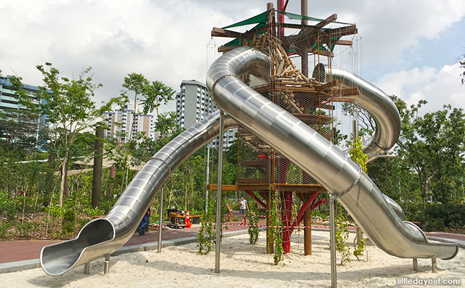 If you look at the Snake Play tower, there are multiple tubes which lead down from the top back to the ground below. Two of these have a gentle bend and zipping down the slides also mimics the actions of the Paradise Tree Snake.