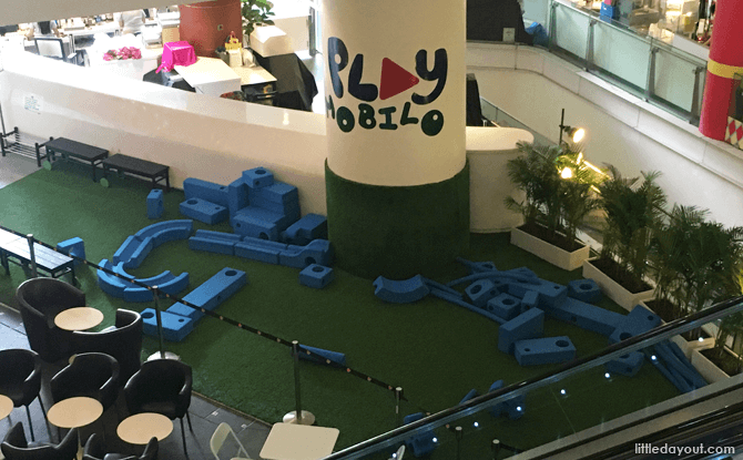 Tucked away behind the shopping mall’s customer service counter is The Star Vista Children’s Playground. Known as the PLAYMOBILO Playground, it does not have any permanent play structures, slides or teeter-totters that you would normally find in a shopping mall’s children’s playground. In fact, it does not have any traditional children’s play equipment at all.
