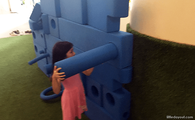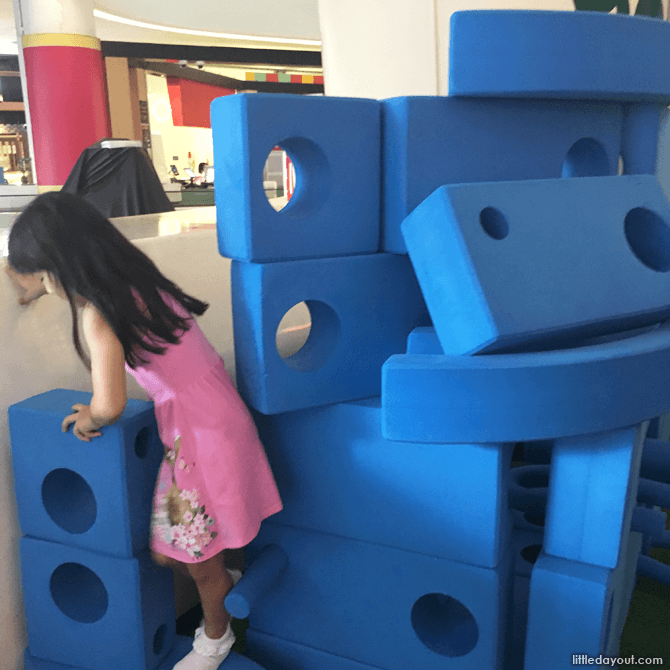While The Star Vista children’s playground is better suited to younger kids, older ones will adapt it to their level. That’s the beauty of the blue building blocks. They can be anything kids make them out to be.
