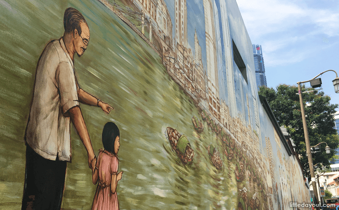 The last scene depicts the Singapore River. By the river bank, a grandfather stands with his young granddaughter. Together, they look back at two centuries worth of aspirations, sweat and tears that have made Singapore what it is today.