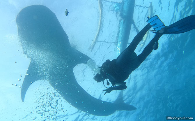 Instead of snorkelling, we opted for a fun dive, which allowed us to observe the whale sharks from a different perspective. While this meant we could only see their underbellies and not the signature spots, it allowed us to avoid the crowds and encounter these gentle giants face to face upon coming up from the deep.