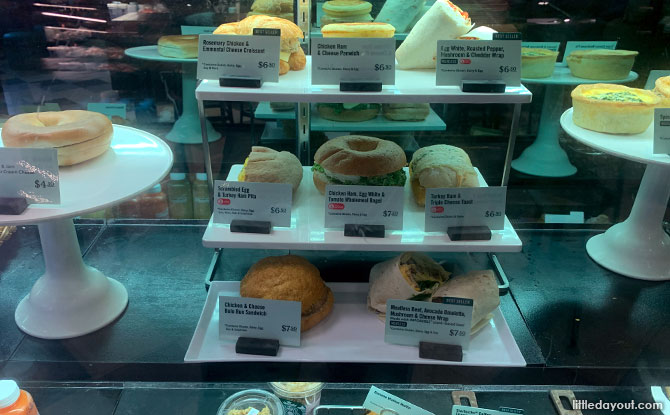 Inside, you will find Starbucks and a selection of bagels, pitas and other light food.