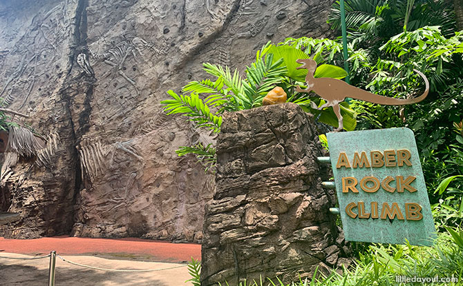 At The Lost World, there is a rock-climbing attraction towards the rear of the land. This was still closed when we visited but there are indications that it may be reopening soon. Amber Rock Climb has three levels, Easy, Medium and Difficult. You admire the fossils embedded into the rock face on the way up too (assuming you aren’t too busy struggling to stay on the wall).
