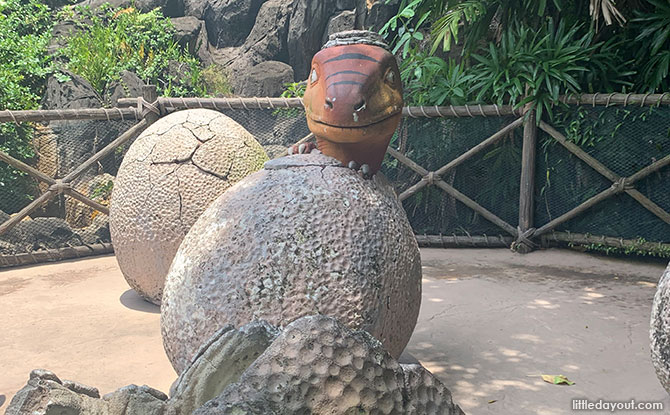 However, there are two that you may miss out on. The first may be more appealing to young kids. It is that of a baby dinosaur hatching out of an egg at the rear of The Lost World.