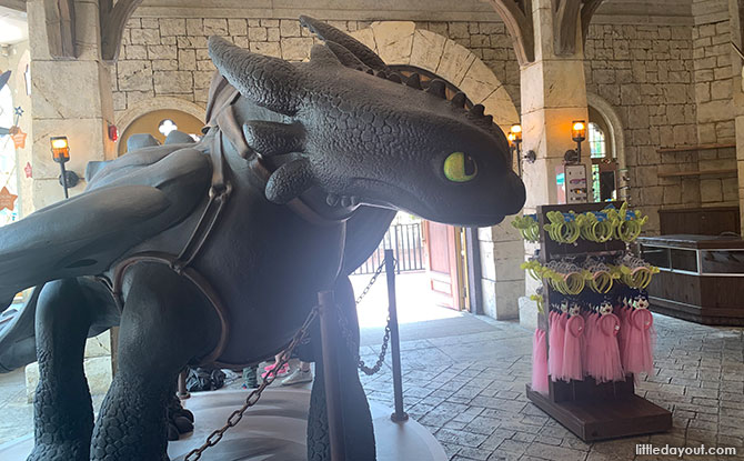 The second photo spot that you may miss is that of Toothless from How to Train Your Dragon. The statue can be found inside the Fairy Godmother’s Potion Shop.
