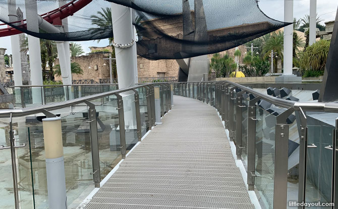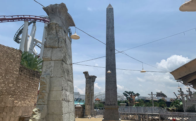 If you want to get to Ancient Egypt zone, there is a bridge that goes under the Battlestar Galactica roller coaster and takes you to Ancient Egypt.