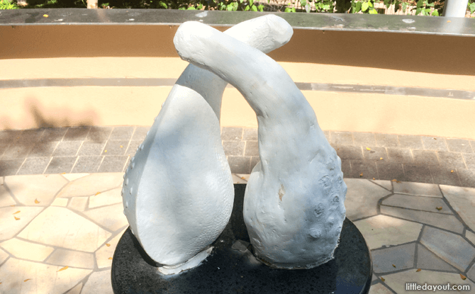 Visitors can attempt to learn the alphabet in sign language near the entrance to the garden zone or admire a white ceramic sculpture, Connect, by Ahmad bin Abu Bakar, that invites tactile exploration.