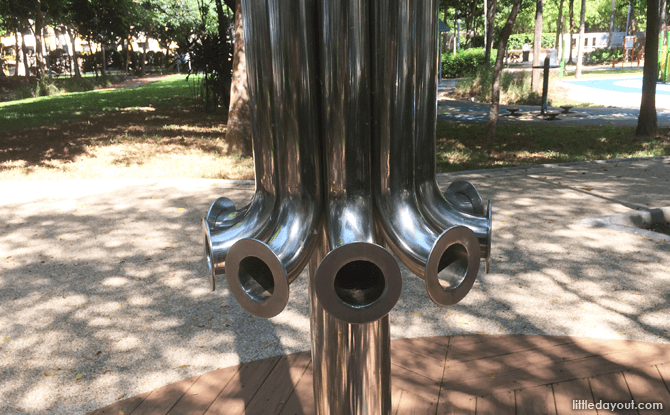 If the kids feel like they have exhausted their senses, head over to the playground which appeals to their sense of fun instead. The brightly-hued play equipment includes curvilinear “telephone tubes” for the kids to communicate with one another. If all that does not keep them busy, send them over to the nearby metallic pipe structure and ask them to try and figure out what it is for.