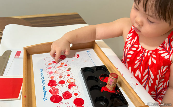 The different flag worksheets also provided a platform for her to practise her creativity in different mediums (finger painting, stickers, stamping) and develop her finer motor skills.
