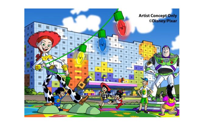 At the new hotel, the exterior, entrance, lobby and other areas will bring to life the world of toys based on the popular Disney and Pixar Toy Story film series.