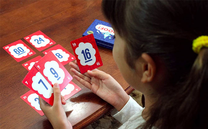 Proof! is an award-winning, fast, fun, and addicting math game that the whole family can enjoy! Work that mental math magic as you race to find creative equations hidden among nine number cards. Keep what you find and collect the most cards to win! More details here.