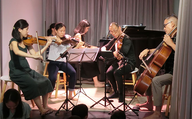 The mini concert featured Cherie Khor on piano, Tang Tee Tong and Clarissa Lim on violin, Christoven Tan on viola, and Leslie Tan on cello performing Gabriel Faure’s Piano Quintet No. 2 in C Minor Op. 115.