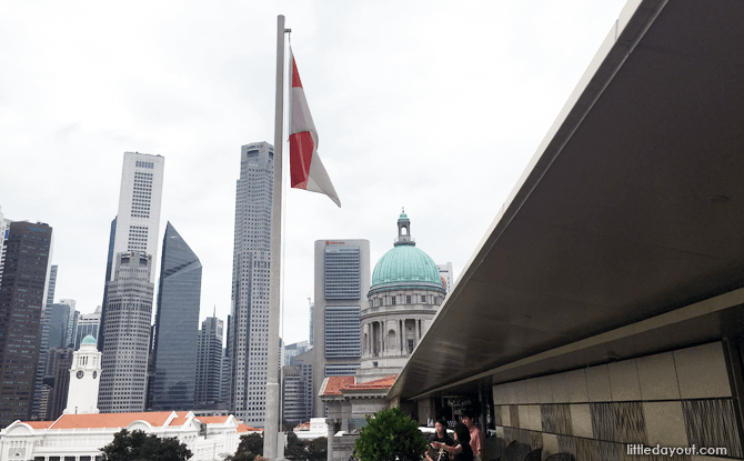The tour ends of at the rooftop of National Gallery Singapore with a panoramic view of the Padang, Central Business District and Marina Bay.