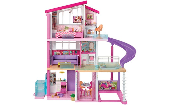 With three stories, eight rooms, all-angle play, a working elevator and pool with slide, the Barbie DreamHouse is the ultimate playhouse that is sure to spark the imagination for all who play with it! There’s even a second-story pool that you can fill with water as well as lights and sounds that add a fun and realistic touche. Add on some two-in-one transforming furniture pieces to expand the storytelling possibilities!