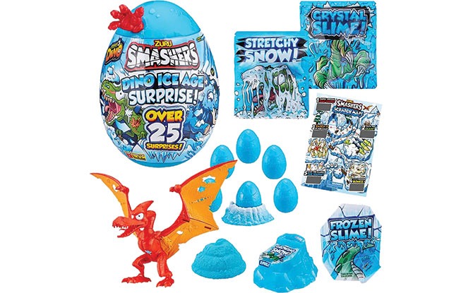 Smash open the new Dino Ice Age Surprise Egg to build an exclusive Smash-o-saur! Collect all the pieces to start building either a T-Rex, Pterodactyl or a Woolly Mammoth. There are over 25 icy surprises to find and players can use the Arctic Scratch Map to excavate the Dino Ice Age to defrost compounds like the Growing Snow and Crystal Slime. You might even find more of the hidden Smash-o-saur pieces!