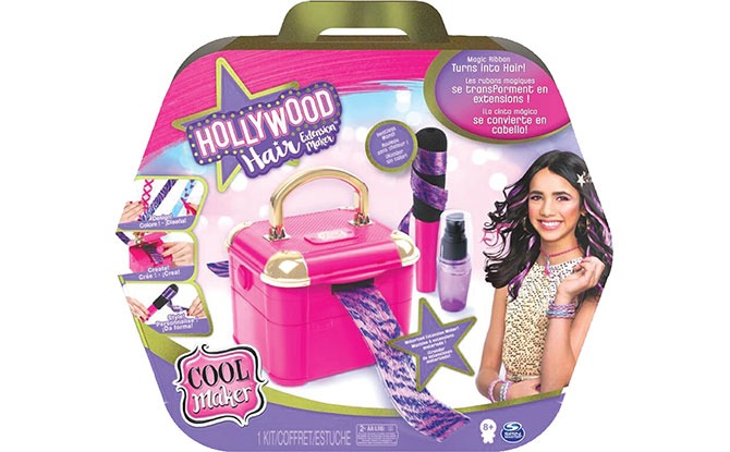 Design and create custom hair extensions with the Cool Maker Hollywood Hair Extension Maker! This kit gives you the possibility to customise and style up to 12 wearable hair extensions. Simply Choose a coloured or patterned hair ribbon and design any way you want with the included markers and load the ribbon into the machine. Press the button and the motorised Hollywood Hair Extension Maker magically transforms your hair ribbon into a super cute wearable hair extension!