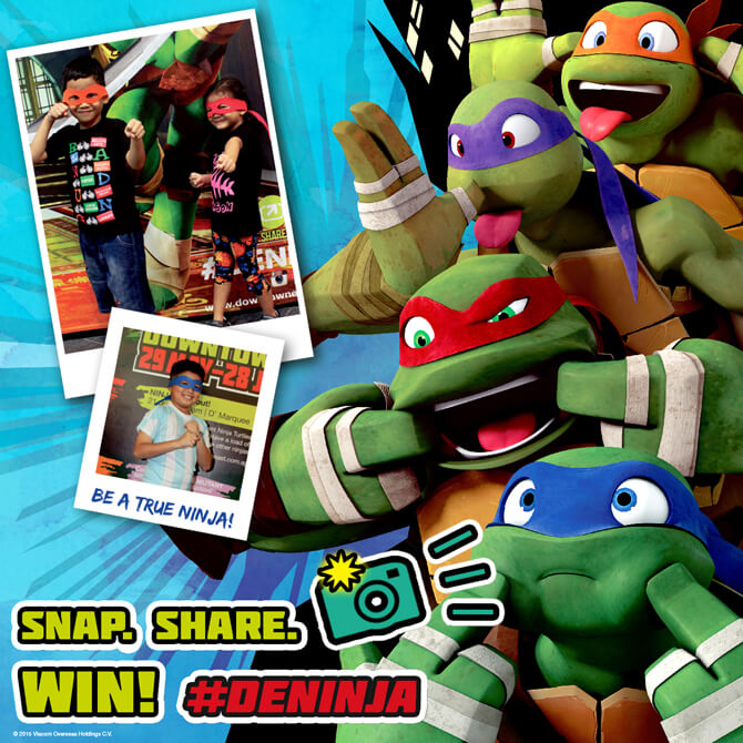 Snap a picture dressed like one of the four heroes Leonardo, Donatello, Raphael, and Michelangelo in a half-shell, or strike your best ninja pose to take part in the Pose Like a Ninja Contest. There is no need for stealth mode. Instead, share the picture online and stand to win attractive premiums.