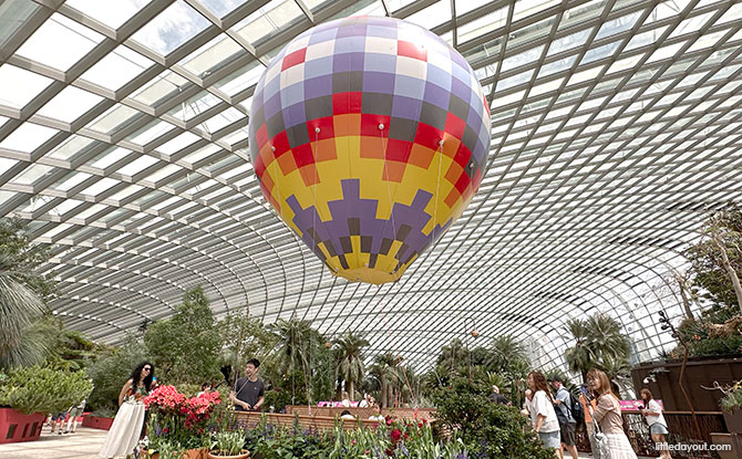 Entering into the Flower Dome, you will first be greeted by a display of a hot air balloon. This photo spot provides a foretaste of the display at the Flower Field that will take you to varying parts of Türkiye and its rich past.