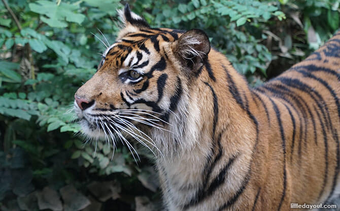 The Lion and Sumatran Tiger have their own separate enclosures. These provide close-up views of the majestic big cats.