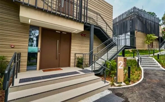 The six chalets at The Chevrons Jurong are double-storey with two bedrooms, dining area, kitchenette and sheltered BBQ pit.