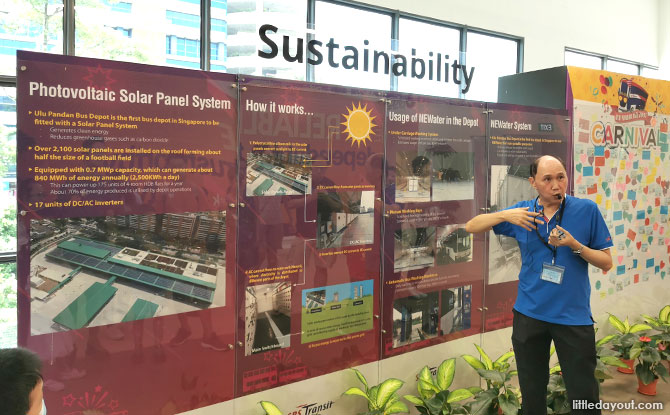Ulu Pandan Bus Depot is also the first bus depot in Singapore to be equipped with a solar panel system. This generates clean energy for its electricity demands.