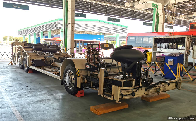Next was a visit to the workshop where buses get repaired. Here, buses are stripped bare down to the chassis for training purposes.