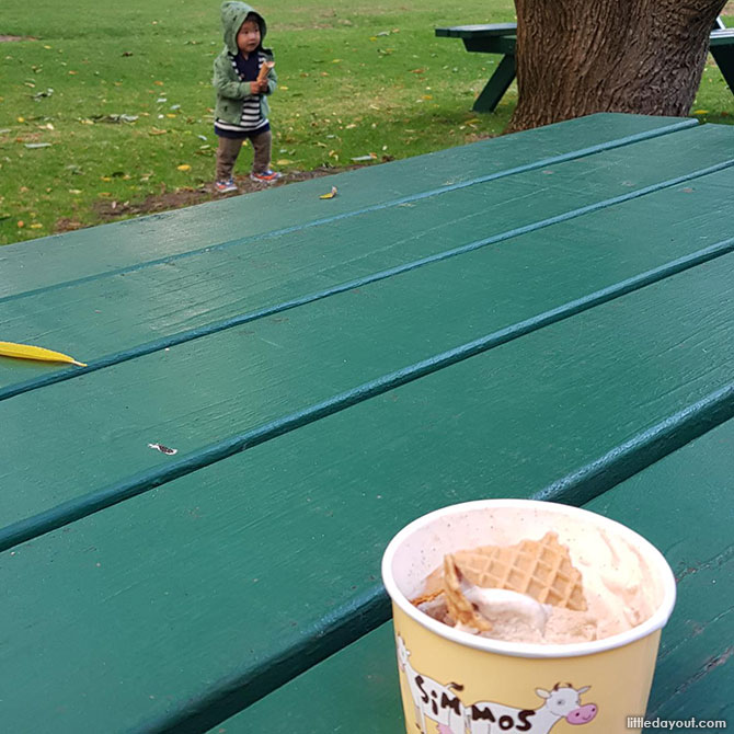 Simmo’s Ice Creamery was a little off the main thoroughfare but worth the side trip. Traditional family favourite flavours along with bold new ones are on offer and the shop opens up to extensive grounds filled with slides, swings and sand pits.