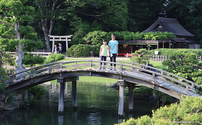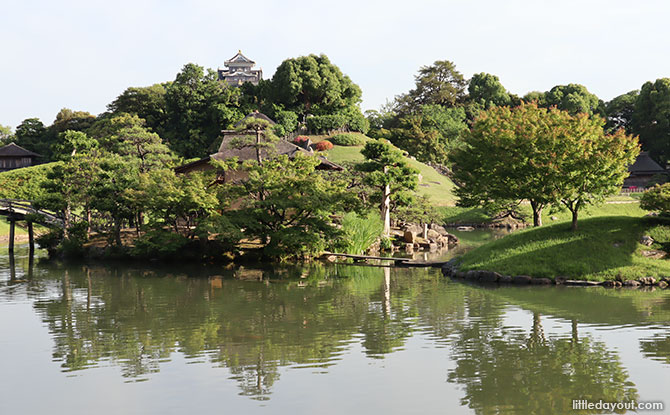 Tsunamasa’s son, Tsugumasa, added an artificial hill in the middle of the garden and streams of water pulled from the Asahi River, making a stroll through even more satisfying.