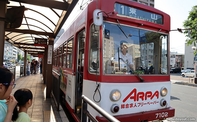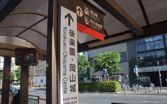 To get to Korakuen and Okayama Castle, we took the tram which operates in the middle of the road from the terminus outside the Okayama JR Station past Momotaro-dori to Shiroshita. It costs 100 yen for these two stops.