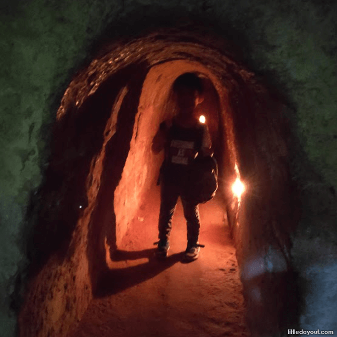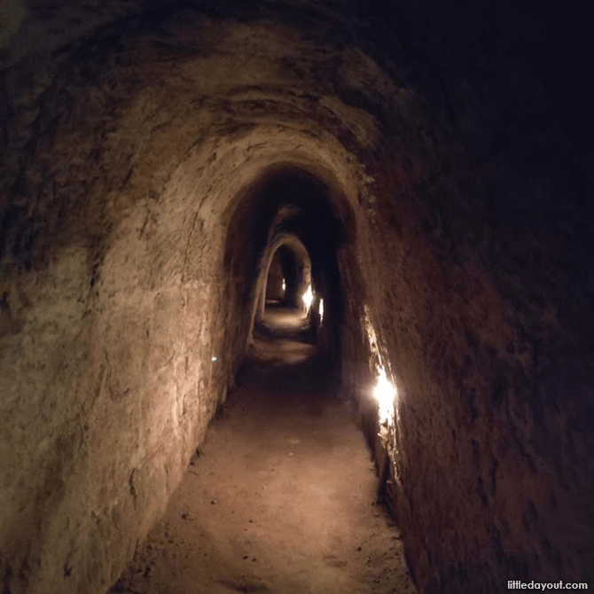 There were three tunnel distances we could experience and the children were thrilled to be heading into the “hobbit holes”. Most of the time, we had to bend over to move along the tunnels for the first level which was two metres underground.