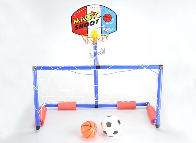 You don’t need a court or pitch to shoot hoops or score goals with this floating netted stand. Suitable for ages three and up. Website