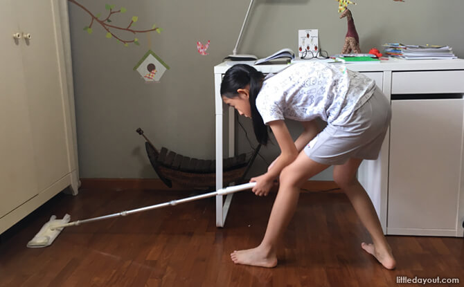 Remember to give them tasks that they can realistically accomplish, in bite sizes. They may be too young to clean the nooks and crannies thoroughly or strategise where to store things, but they can help wipe their own study desks with a damp cloth or label things after you’ve sorted them out, for instance.