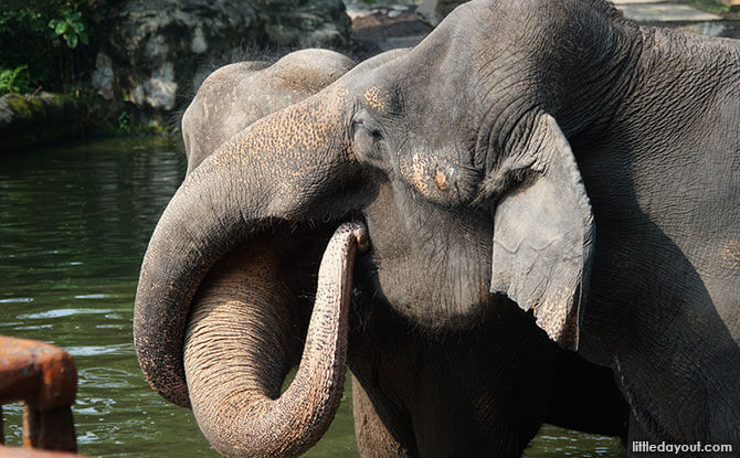 At the Singapore Zoo, we are usually only able to view these amazing animals from the spectator area at the Elephants of Asia exhibit.