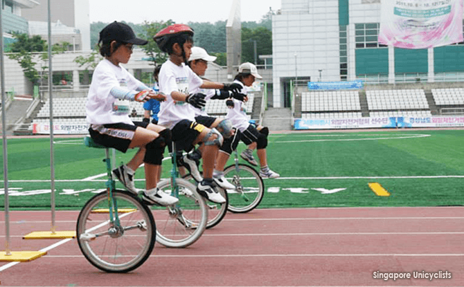 Think bicycles are too boring? Go for the unicycle.The single-wheeled ride has a tight community in Singapore, and some of the members of Singapore Unicyclists are families with young kids.