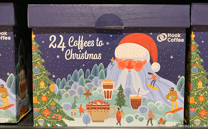 This year, 2021, NTUC Finest has an interesting take on the advent calendar for adults – a Hook Coffee calendar. It contains 24 illustrated sachets of different coffees, a collab with artists from Very Special Arts Singapore.