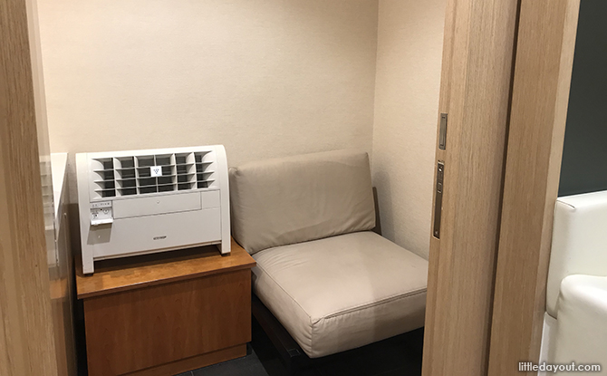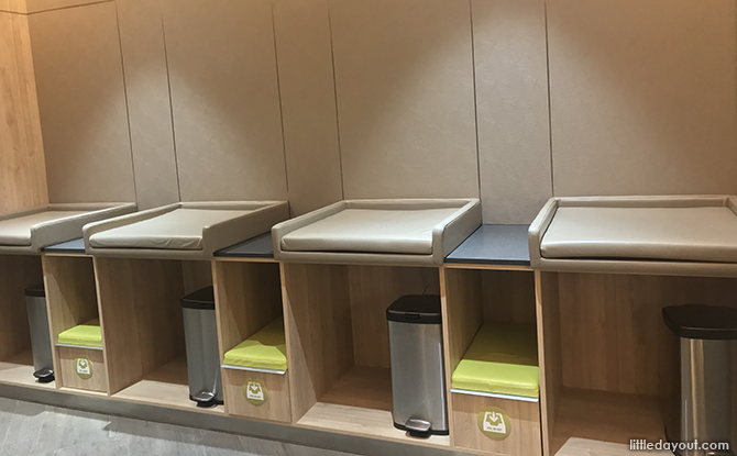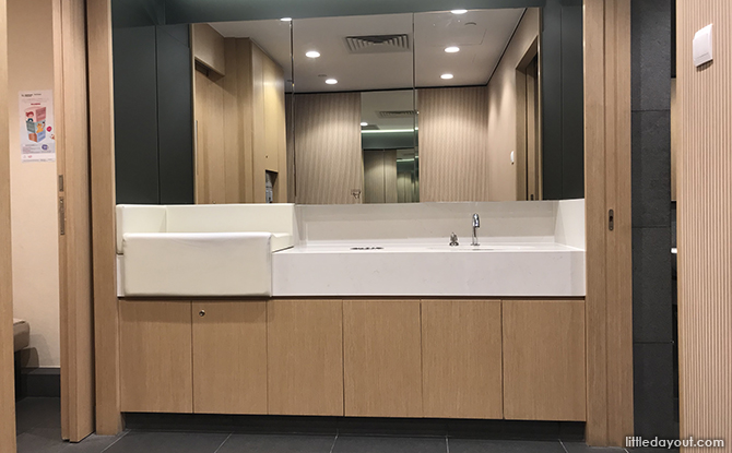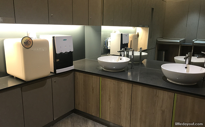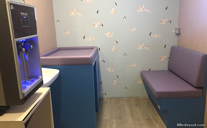 There is also a hot and cold water dispenser, a sink and a cushioned diaper changing station- family-friendly facilities for parents to do emergency feeds or diaper changes.